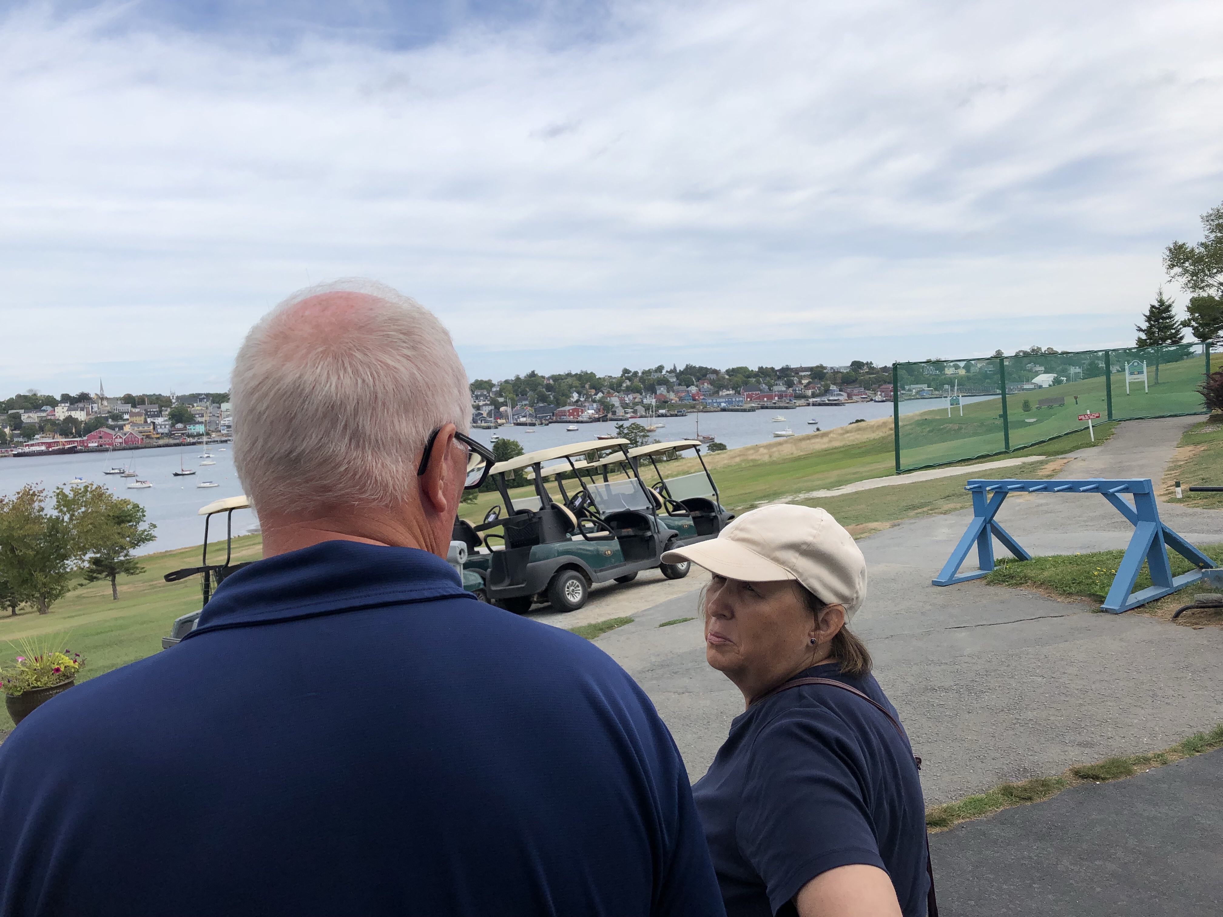 Our first stop was the Bluenose Golf Course across the Bay from the Lunenburg waterfront where we went to take in the view. Kathy would loved to have played the nine hole course with the ladies league but sadly her clubs didn’t fit in the car and were left at home. Instead Kathy chatted with a Club employee about the course and picked up a ball marker.