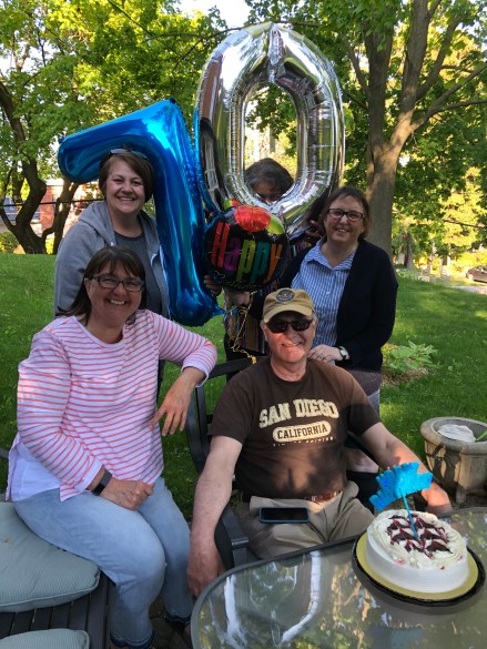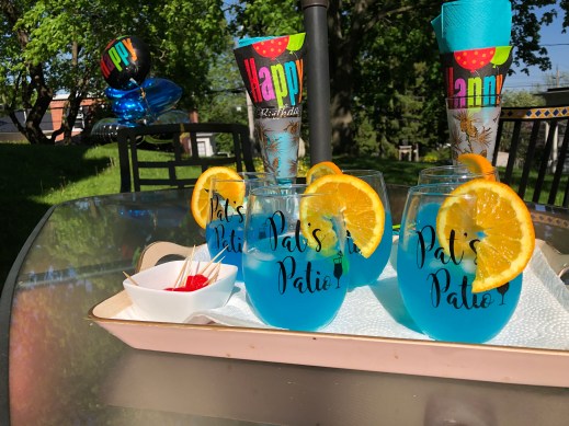 It was a full patio with all the Girlz and husbands present and accounted for! Today we not only cheered the opening of Patio season, but also celebrated a milestone birthday for one of our Patio Husbands. Pizza, cake and some blue coloured cocktail mixed by our very own Mixologist and Patio Girl, Pat were served. We toasted with some bubbly and happily the cork flew through the air, past the tree, down the hill and landed somewhere without breaking any windows.