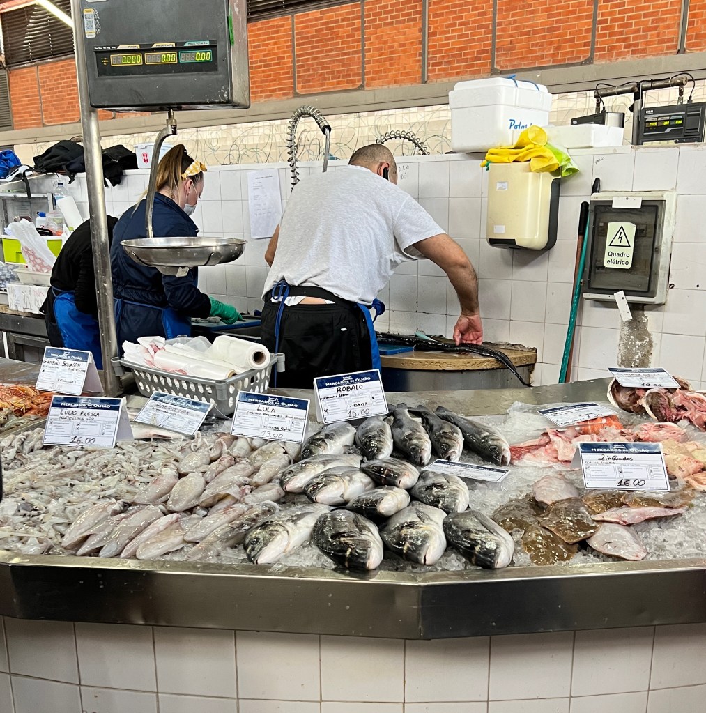 After our market tour the hunt was on for a ‘catch of the day’ restaurant. We found many, but ended up in a Patrao Joaquin Lopes square, a short distance away from the busy market. From our table outside the restaurant we watched children and adults pose with a bronze statue of a mermaid. I enjoyed fresh sea bass (delivered to the table complete with head and tail) and Derek sampled the fried Hake. We were not disappointed.