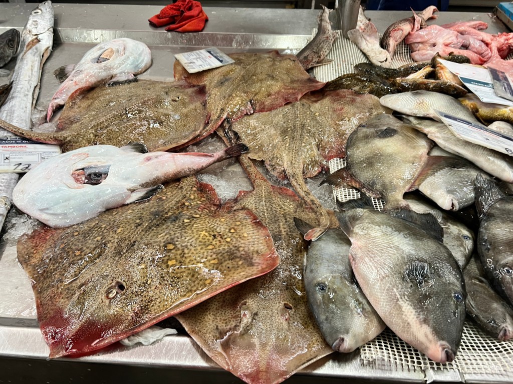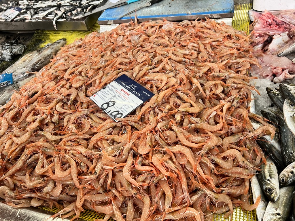 Just south of Estoi is Olhao, a large fishing port in the Algarve, with a bustling fish and vegetable market. The first building we entered was two rows of seafood venders. What a sight!
