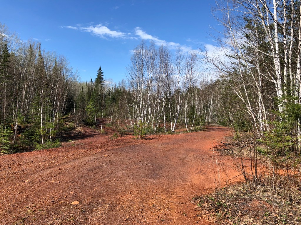 The site is huge and is becoming quite naturalized again but there Is still lots of evidence of what was there, if you look. We took in elevated views of some sections of the pits and discovered remnants of the train line that serviced the site. We drove along a pit road and stopped for pics at a tailings area. What is most striking is the color of the earth throughout the area, the rusty red of weatherized iron ore. It looks just gorgeous against the white birchs and evergreens of the area and is guaranteed to send you on your way with red stained shoe soles!