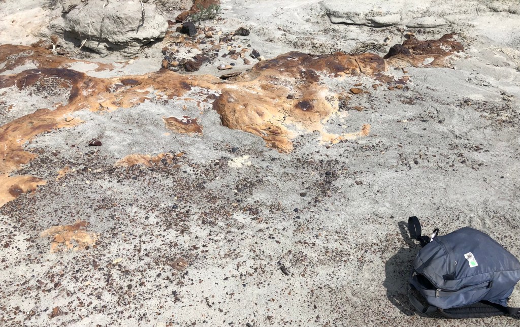 As we explored the fossil hunters trail,, an area where paleontological excavations took place in the early 20th century, I did manage to let my imagination see a dinosaur exposed on the ground surface. What do you think?