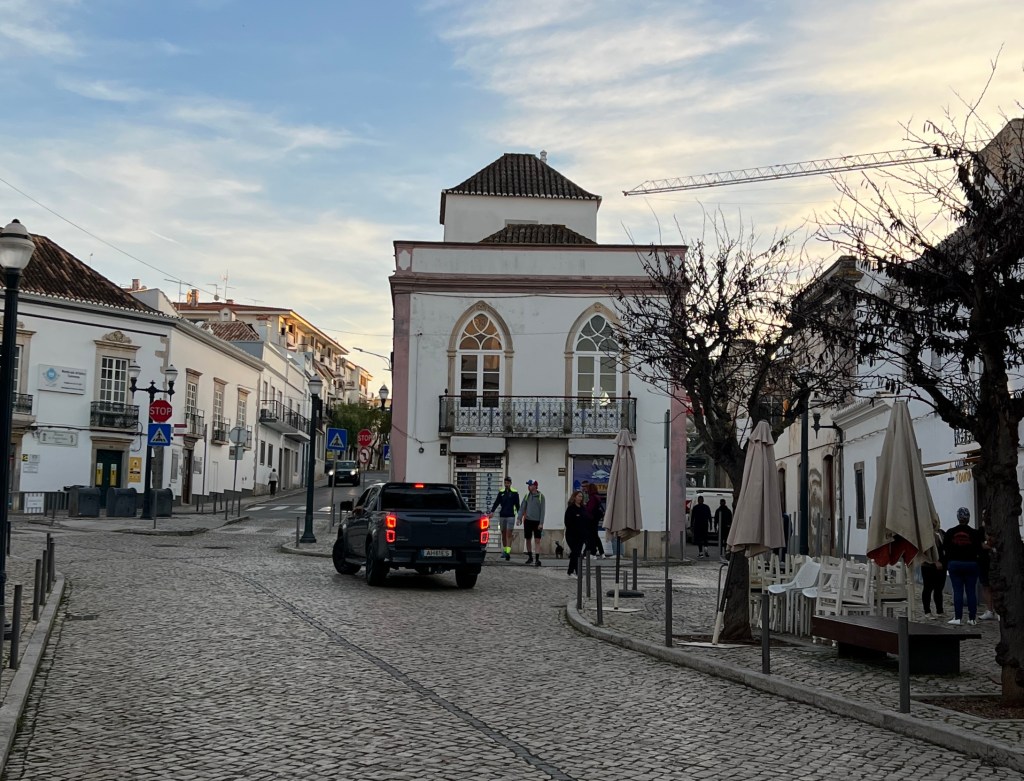The apartment located in the old part of Tavira, overlooks a cobbled street heading to the river. The building is situated between streets where five streets converge on the intersection. This is typical Roman design, not the orderly grid system to which we are accustom.