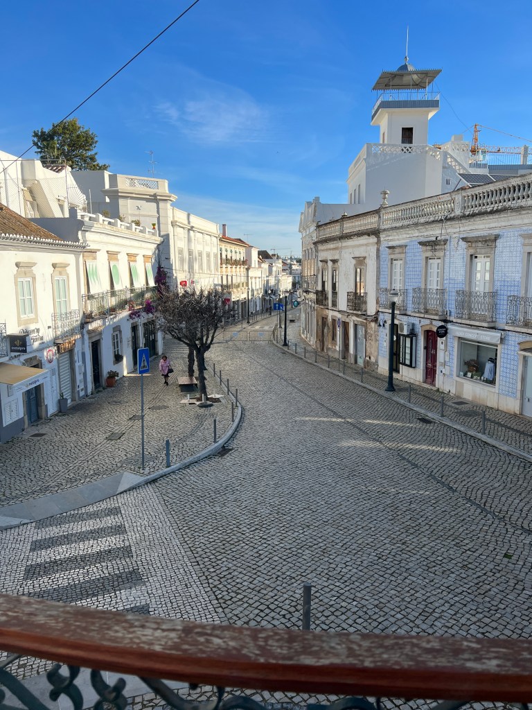 The heavy wooden shutters creak as I open them. Sun bursts into the kitchen. Church bells start to chime and then ring, beckoning to come. The streets are quiet save for the occasional pedestrian and delivery vans. Cyclist, competing in the Algarve Challenge ride by on the cobble streets. This is Sunday morning in our little apartment in Tavira.