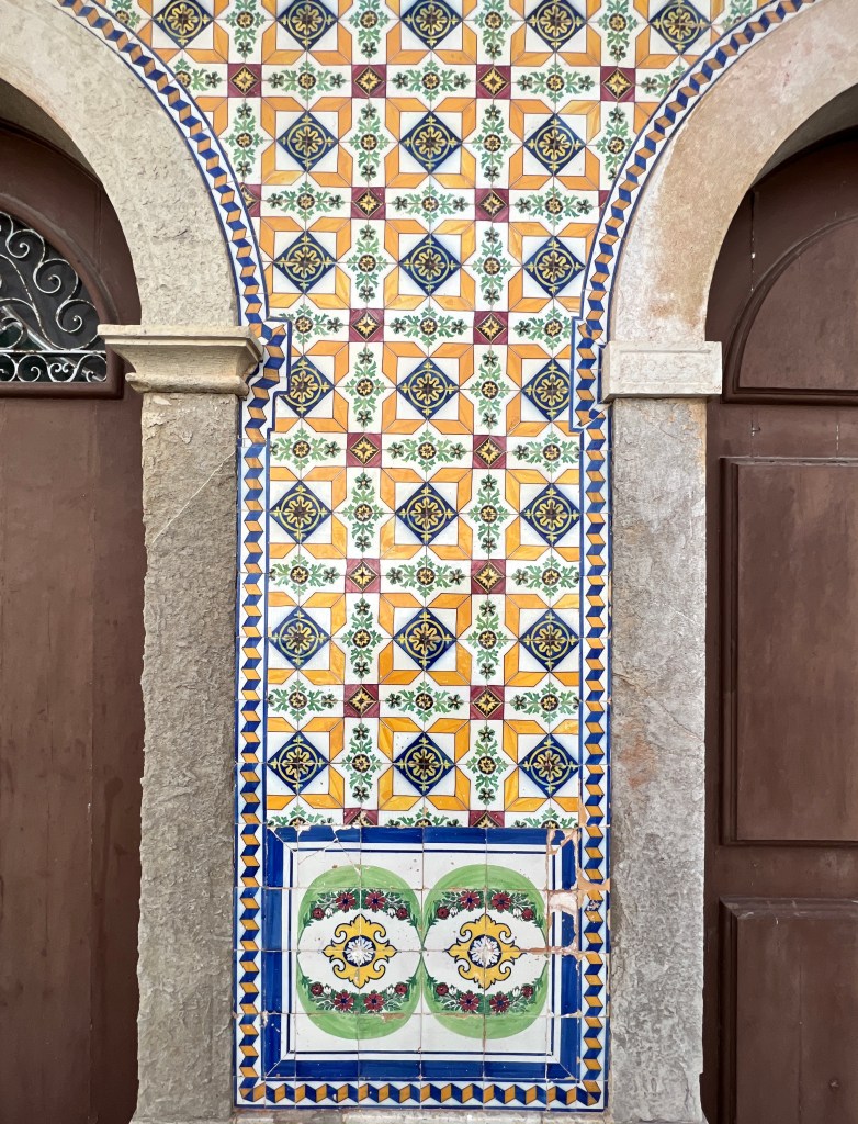Laundry day! The laundry mat is a few blocks away overlooking the river. With the 45 minute wash cycle we head over the river in search of a particular street with some interesting tile facades. According to the “Urban Geology and Palentology Guide (2016)” left in our apartment, there are exposed fossils in the door archways made from a grey rock, called ‘marl’. The two story facade is completely tiled with detailed decoration around the doors and windows suggesting a wealthy owner commissioned the work. There are other buildings along this street with beautiful tiles and doors and I happily photograph many of them.
