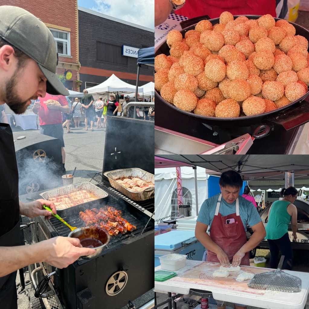 We passed by vendors selling carmel corn, various baked goods, hamburgers, jerk chicken, BBQ, cheese and a whole lot more. Mexican, Asian, sweet, spicy: there was something for every palette. Given there were so many tempting choices we became strategic, deciding to share a variety of offerings so we could sample more dishes! After our very refreshing dry cider samples we walked the full length of the food vendor section before selecting sesame balls. Sesame balls are similar to a donut hole, but filled with goodness. We also sampled a BBQ’d cannoli shell filled with meat, rolled in bacon and covered in BBQ sauce which was excellent. I also couldn’t resist the wood fired pizza, so we split one of those as well.